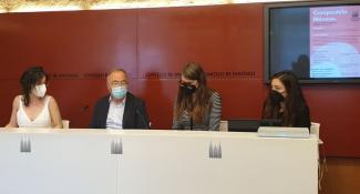 O programa, que forma parte do Plan de Reactivación Económica e Social PRESS do Concello de Santiago, foi presentado esta mañá polo alcalde, polas técnicas de proxectos da empresa Implictum, Raquel Piñeiro e Tania Aira, encargadas do seu desenvolvemento, e pola técnica do departamento de Promoción Económica, Carme Casado.